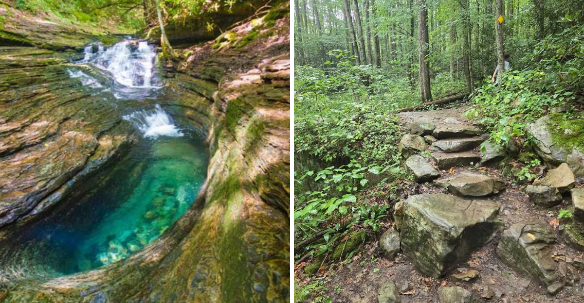Deep in the mountains of southwest Virginia, within Jefferson National Forest, a hidden pool of blue-green water glows against ancient rock. The color looks unreal at first glance, but it is entirely natural, shaped by minerals, light, and the slow work of time.