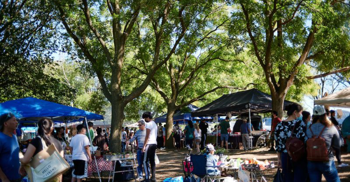 Picnic tables scattered throughout invite families to linger over lunch rather than grab-and-go. Face painting stations and storytellers keep young ones entertained while parents browse. The adjacent soccer fields mean families can make a full day at the park, starting with morning sports before heading to the market for lunch and shopping.