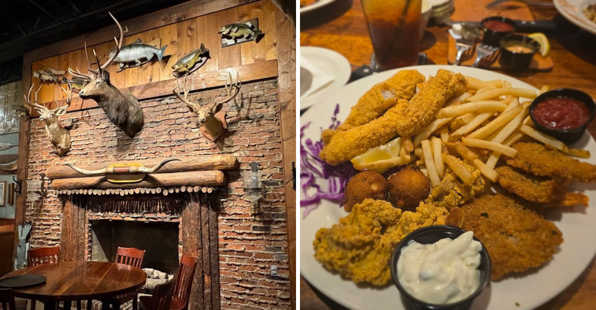 There is something thrilling about sitting down for catfish while a real alligator lounges just a few feet away in a tank. It sounds wild because it kind of is.