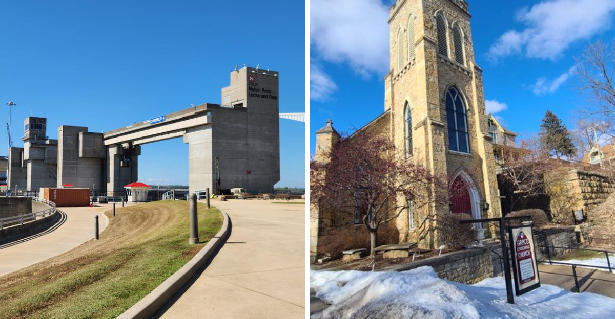 Illinois shows strong ties to the river here, and winter pares the experience down to architecture, water, and time well spent.