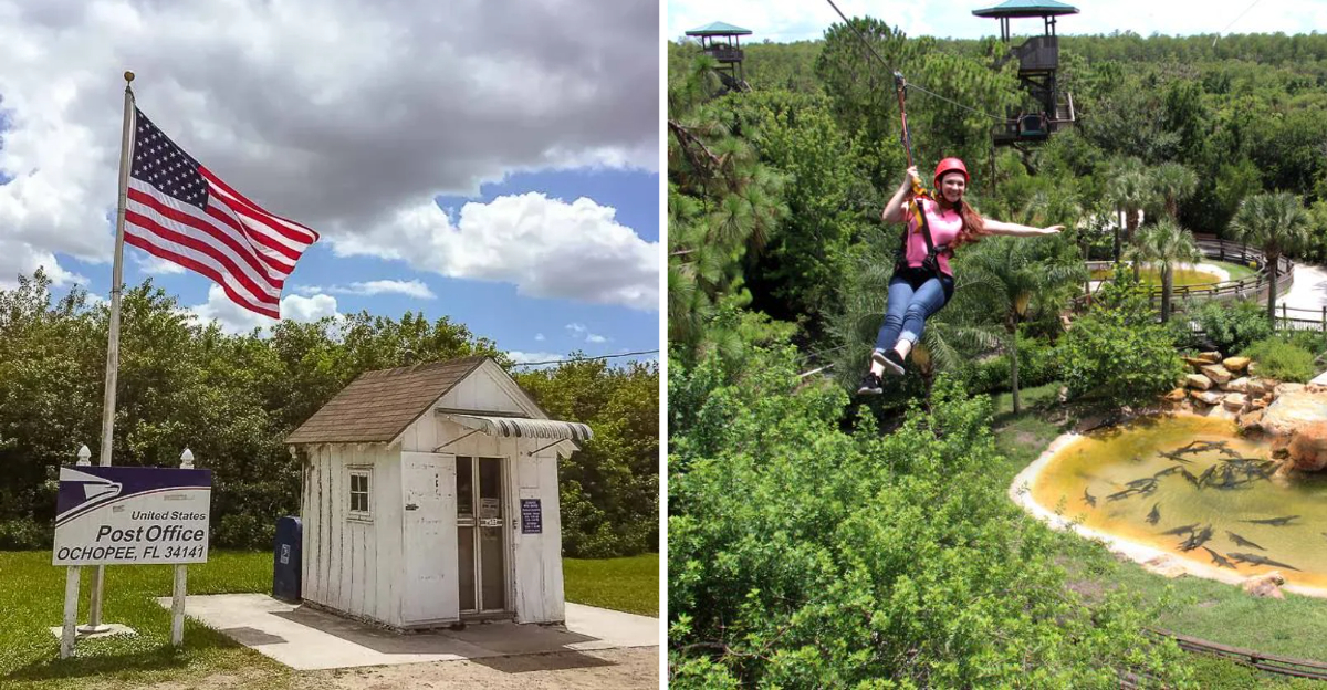 Despite its diminutive dimensions, it’s a fully functioning post office serving the surrounding 250 residents and processing thousands of novelty postcards from tourists. When I visited, the friendly postmaster barely had room to turn around behind the counter but stamped my postcard with obvious pride. The building even survived Hurricane Irma in 2017, proving that in Florida, weird often comes with a side of resilient. Don’t forget to mail yourself something – the Ochopee postmark is a unique souvenir!