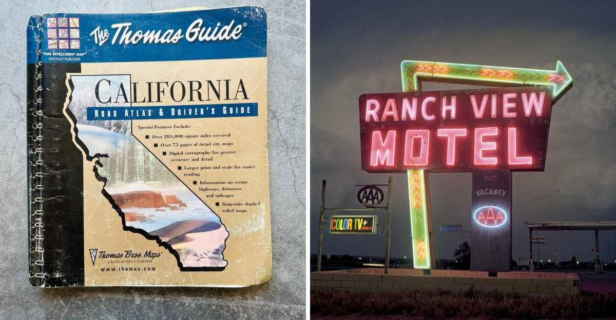 The Thomas Guide reigned supreme for detailed navigation. These spiral-bound atlas books contained detailed street maps of every California county and became essential tools for ambitious road-trippers.