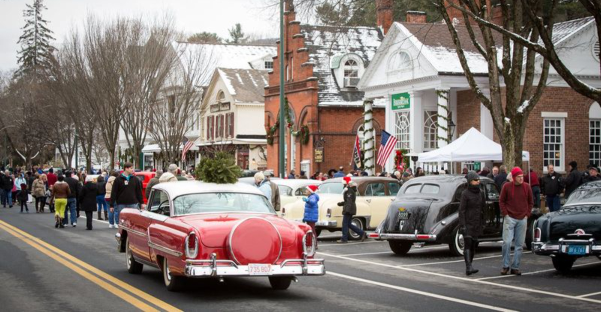 Each December, Stockbridge in Massachusetts re-creates the beloved scene from Norman Rockwell’s painting on its historic Main Street, complete with vintage cars and wreath-trimmed storefronts. The event is carefully organized to manage foot traffic and safety, and town volunteers provide up-to-date schedules and accessibility information. Streetscape decorations are deliberately understated, which keeps the focus on the town’s architecture and long-running local businesses.