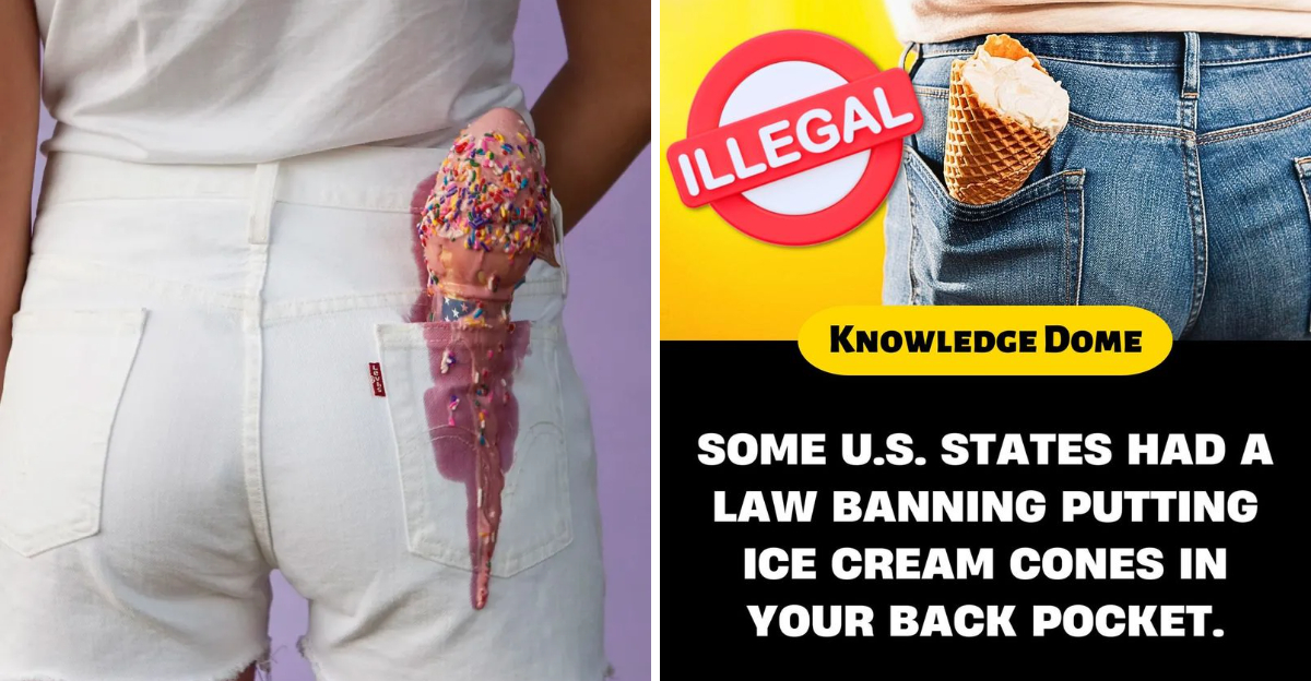 The notion of outlawing ice cream cones in back pockets seems even sillier when looking at the historical context. Ice cream cones became popular in the early 1900s, at a time when horse-and-buggy transport was on the decline.