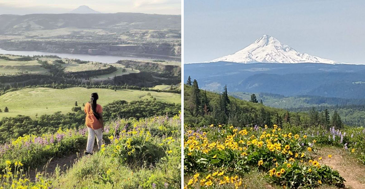 Good news: this is one Oregon view you don’t have to suffer for. No intense climbs, no dramatic “I almost gave up” moments – just a short, easy stroll to wildflower views that do all the work for you.
