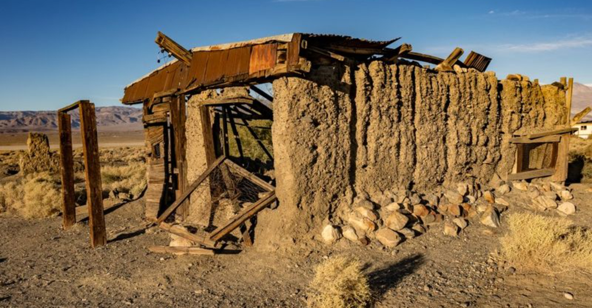 In the heart of the vast and arid Panamint Valley, the ghost town of Ballarat quietly preserves its storied past. Once a bustling miner’s supply point, the town carries whispers of a rough-and-tumble Wild West, including links to notorious figures such as Charles Manson. Scattered around the site, rusted vehicles and crumbling adobe buildings stand as weathered relics, their faded walls and peeling paint telling silent tales of days long gone.